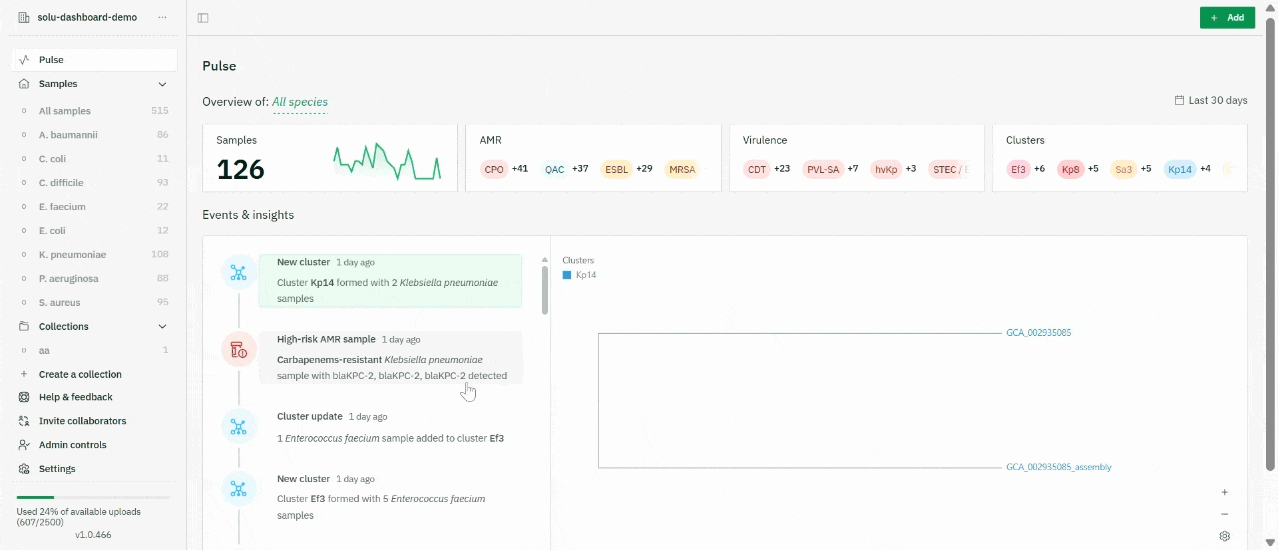Solu addresses this gap in a single feature: Pulse delivers actionable plasmid detection, integrated directly into fast, comprehensive genomic surveillance.